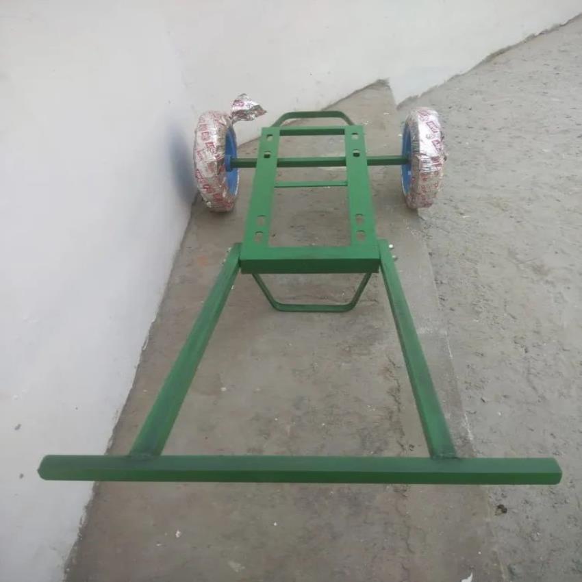Galvanized GI two-wheel cart for pump-set lifting. 100-150 kg load capacity, 200-250 mpa tensile strength.