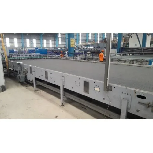 Automatic glass bottle accumulation conveyor, 60-100 feet length. Constructed from mild and stainless steel, operating at 220V, 50Hz, three-phase power, 1.5 KW consumption.