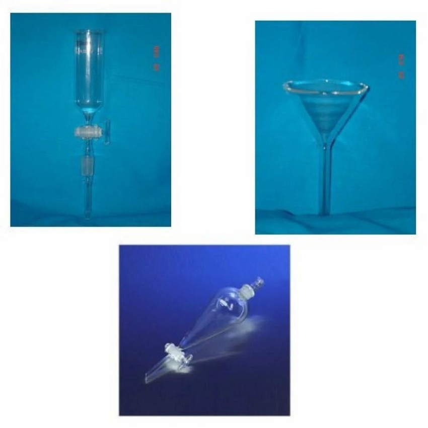 Lab Soul glass cylindrical powder funnel, transparent, 200ml capacity. Made in India for chemical laboratory applications. Packaged in a box.