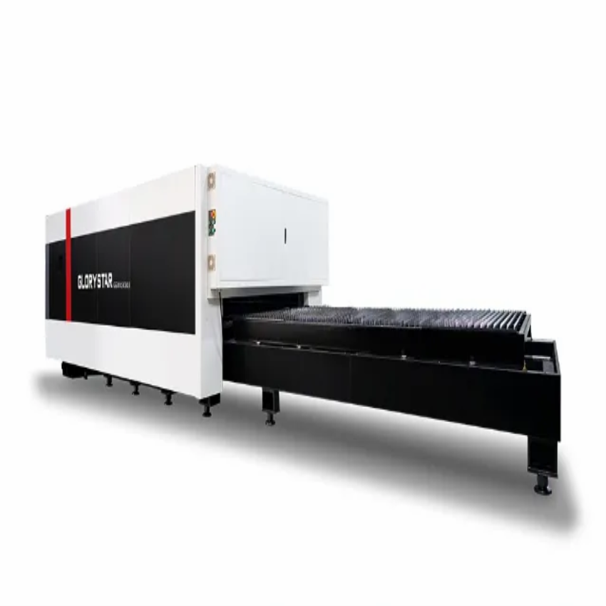 Fully automatic Glorystar cutting machine for sheet metal fabrication. Operates at 440V, 50-60 Hz, with a robust 8-ton weight and IPG power source.
