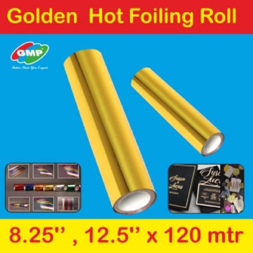 Glossy Golden Hot Stamping Foil for plastic applications (PP, PVC, PS, ABS). Laminating size 210mm, thickness 100mic.