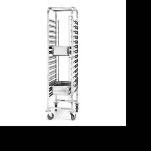 Stainless steel GN Pan Trolley with capacity for 15 Nos of 1/1 GN Pans. Constructed from durable SS material for long-lasting performance in kitchen environments.