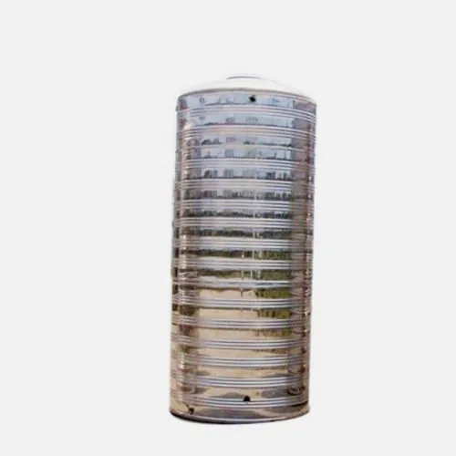 Round stainless steel water tank with polished finish. 3700 L capacity for water storage. Made in India. Durable and aesthetically pleasing.