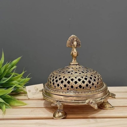 Golden brass loban burner. Minimum order quantity is 100 pieces. Durable construction with a golden finish for incense burning.