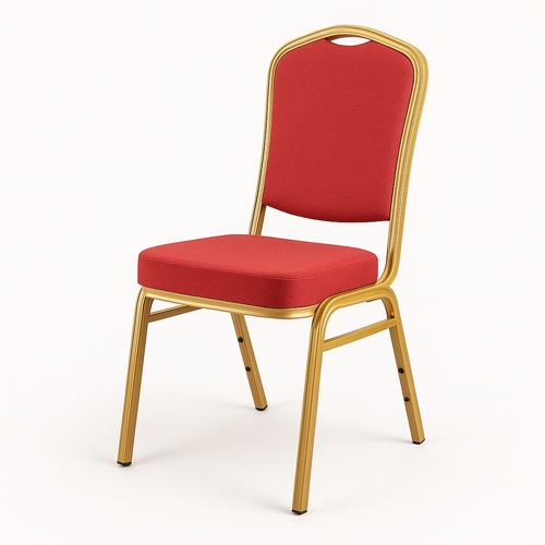 Mild steel banquet chair in golden powder-coated finish. Fabric seat material supports up to 250Kg. Designed for banquet hall use.