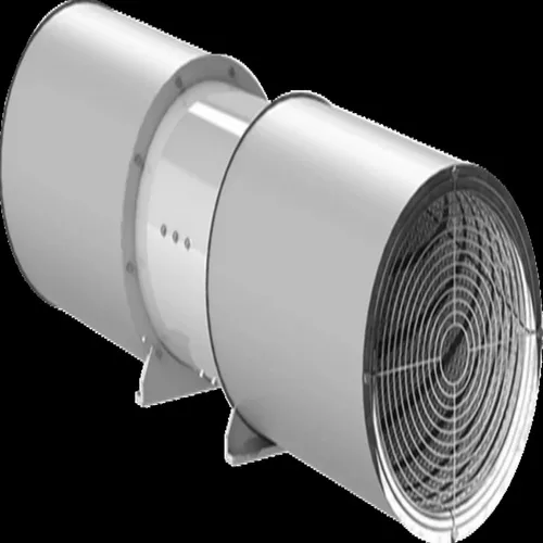 Gray Mild Steel Tunnel Jet Fan, 200 mm (6-inch diameter). Designed for industrial tunnel applications.