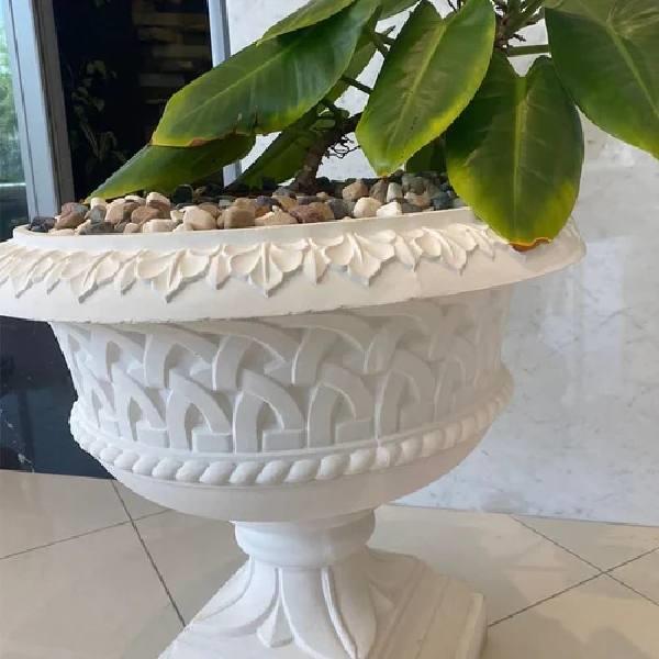 Square, white GRC planter with a matt finish. Crafted from ceramic material, this planter is designed for decorative purposes, adding a modern touch to any space. Ideal for indoor or outdoor display.