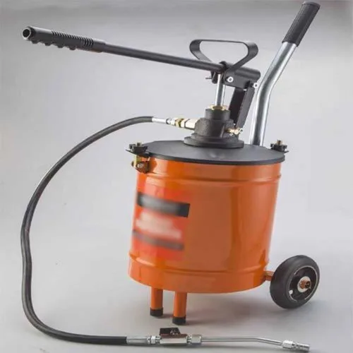 This grease gun bucket features customizable capacity, color, and size. It includes a single hose of specified length for efficient grease application and production.