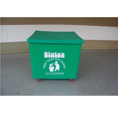 Green plastic vermicomposting bin with 50-litre capacity. Rectangular shape, ideal for industrial, hospital, and outdoor use. Made in India with a spare lid.