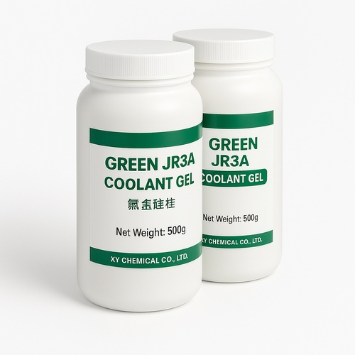Green JR3A coolant gel offers a uniform, stripe-free finish. Made in India, packaged in 5-liter bottles for industrial use.