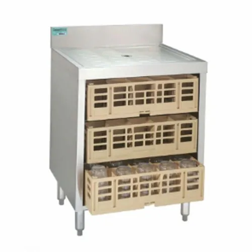 Grey stainless steel bakery counter with rectangular shape and 3 shelves. 3.5 feet height, offering 1 year warranty for bakery use.