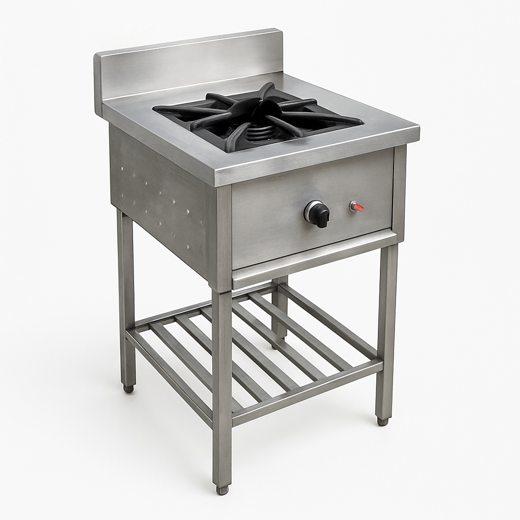 Portable, ISI Certified single regulator commercial stainless steel stove. Grey color. Made in India.