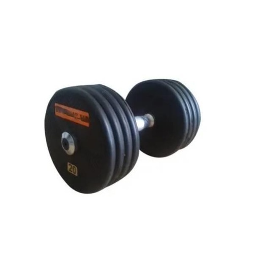 Round head rubber dumbbell constructed with a steel core and outer rubber coating. Ideal for gym use, offering a secure grip and floor-friendly design. Available in black.