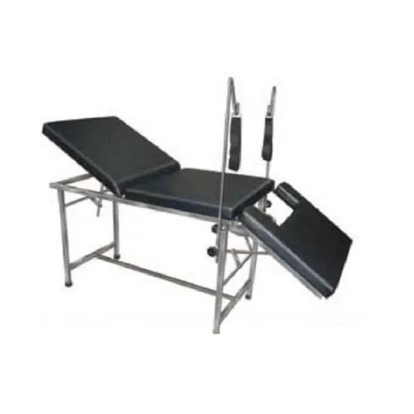 Gynae examination table constructed from durable stainless steel. Designed for clinical use with robust material features.