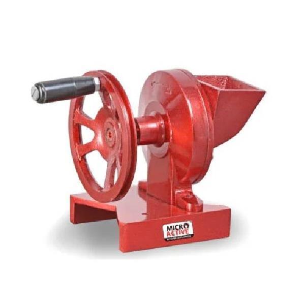 Hand operated dry fruit chips machine with CI casting body and stainless steel blades. Capable of slicing, dicing, and powdering. Compact and sturdy design.