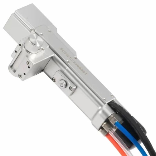 Compact 20W handheld laser cleaning head for efficient surface treatment. Ideal for removing contaminants and preparing surfaces across various industrial applications.
