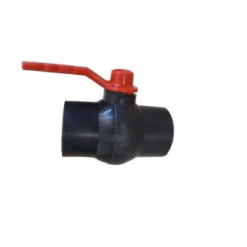 Black HDPE ball valve with a round head. Constructed from high-density polyethylene for corrosion resistance. Ideal for water and chemical applications.