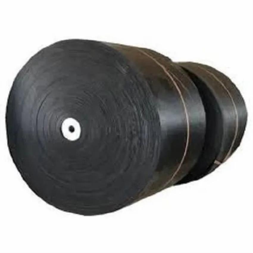 Black polyester conveyor belt, 2-5 mm thick, designed for heat resistance. Supplied in rolls for various industrial material handling applications. Durable and reliable construction.