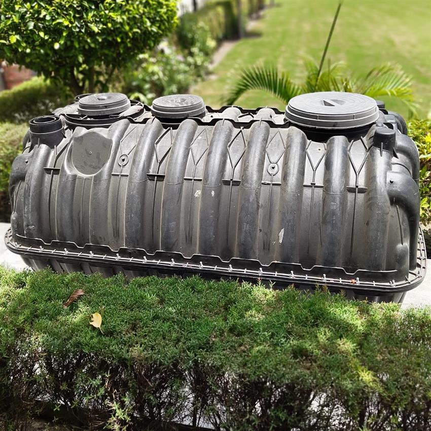 Horizontal cylindrical septic tank made of Polyethylene+Polypropylene. 1000 Ltr capacity. Size: 5.5ftx3ftx3ft. Suitable for residential, commercial, and industrial use.
