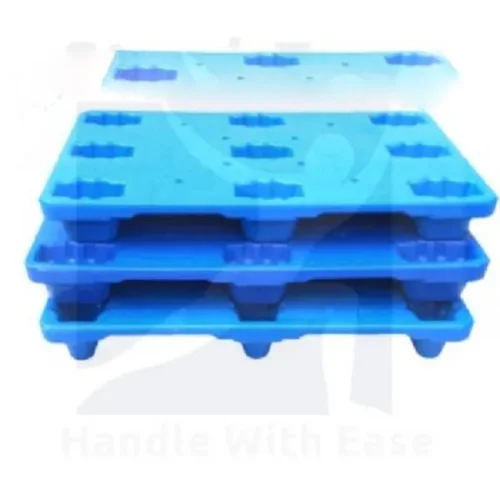 Industrial blue plastic pallets designed for material handling. Offers a substantial 4000 Kg capacity with a two-way entry design.