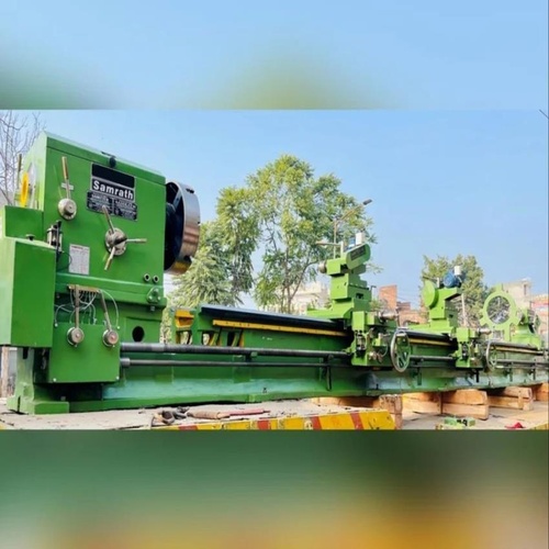 Three-phase, 50 Hz, 415 V, 10 HP electric roll turning lathe machine for metal spinning and wood turning. Mild steel construction, 36 feet length, 1000 mm max swing over bed.