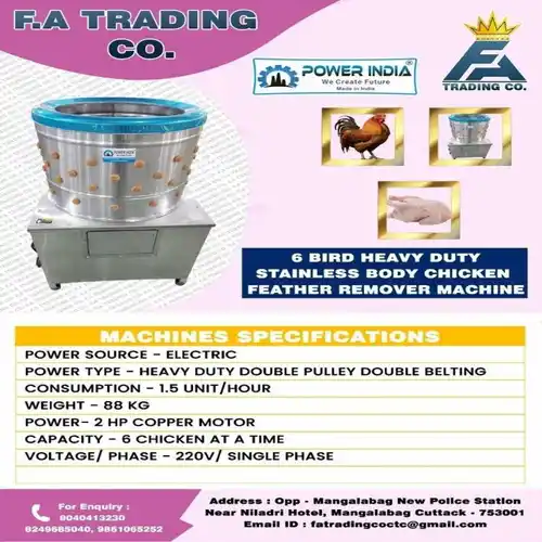 Robust steel body chicken feather remover machine with a powerful 2 HP motor. Designed for heavy-duty use, efficiently removing feathers from up to 6 birds at a time.