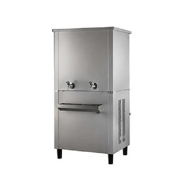 Commercial water cooler with stainless steel body. Offers 10 L/Hr cooling and 100 L storage. Silver finish, built for demanding environments.