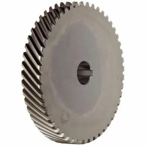 Component for transmitting rotational motion between shafts at an angle. Features angled teeth for smoother, quieter operation compared to spur gears. Durable and efficient.