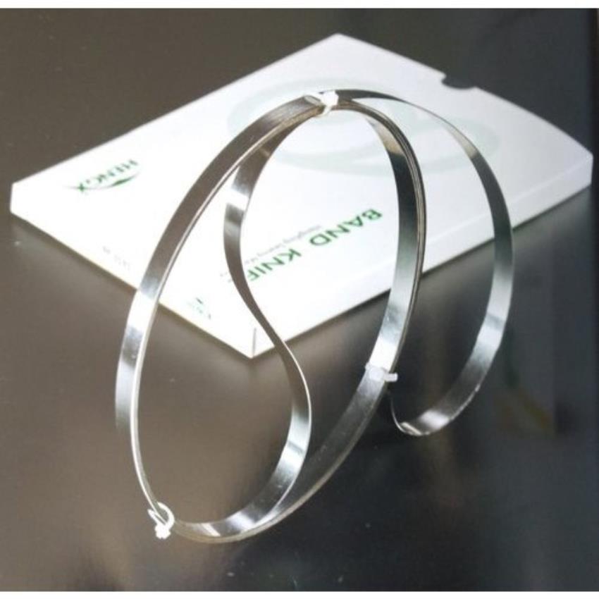 Durable stainless steel band knife with galvanized finishing for corrosion resistance. Packaged in a box for secure transport and storage.