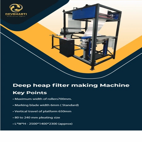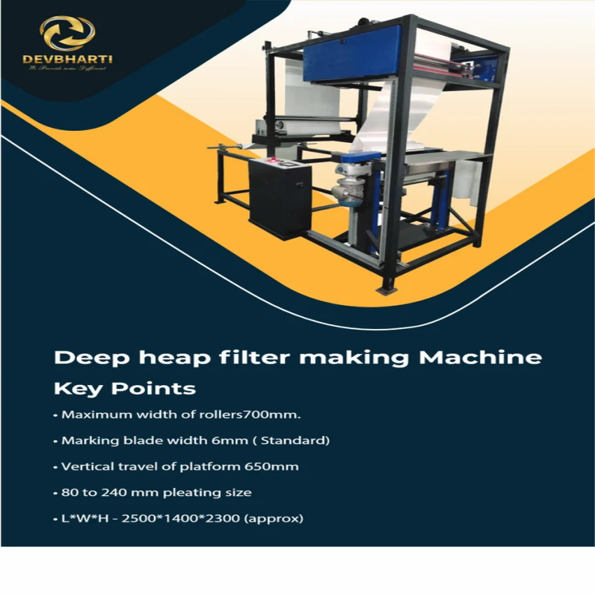 HEPA filters making machine with stainless steel construction. Produces 3200-3500 units daily. Requires 55 KW power, 3-phase, 3000 KG weight.