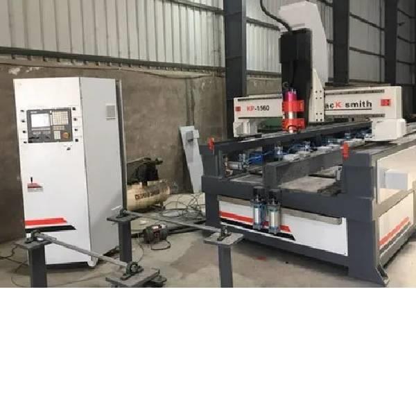 Automatic CNC plate drilling machine (Model KP-1560) for drilling applications. Features 16000 kg/hr capacity, 25mm hole diameter, 100mm depth, and 2000x3500mm table size.