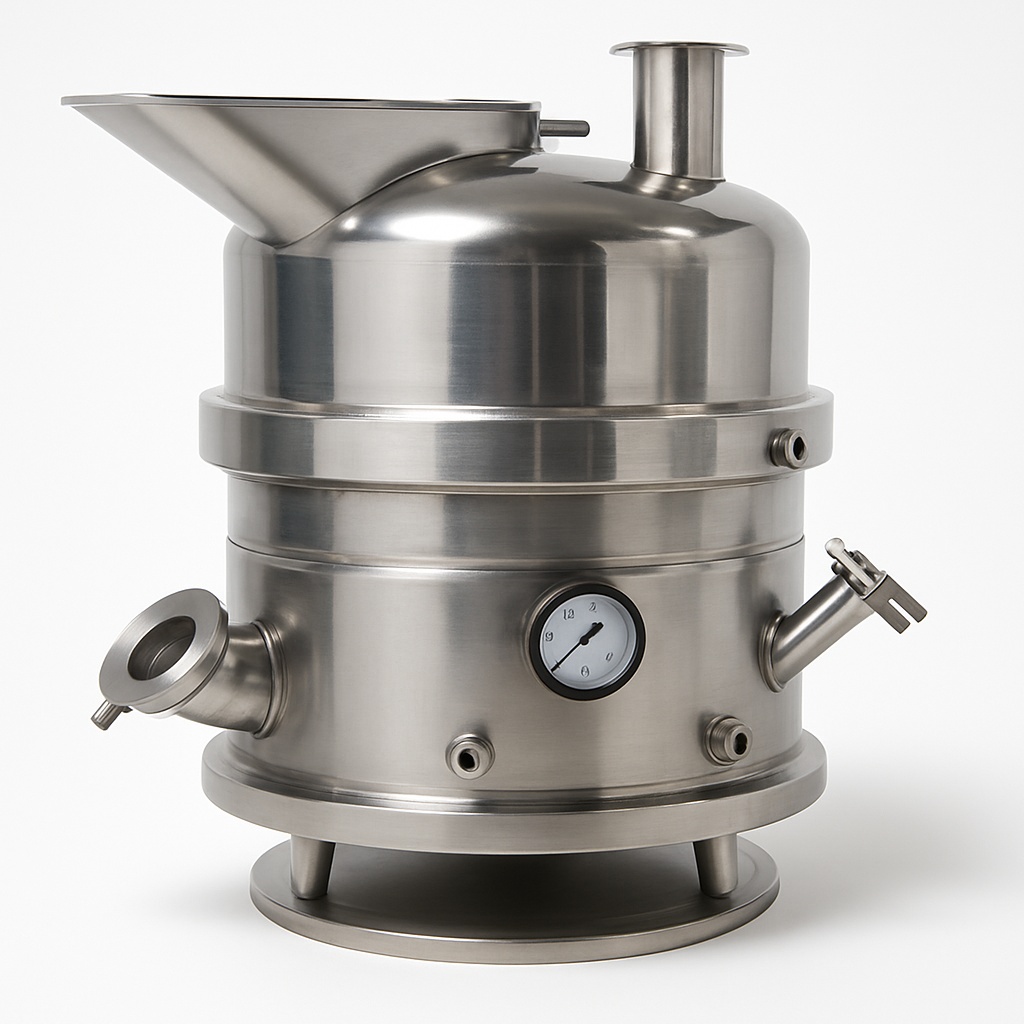 Vacuum candy cooker, 70kg capacity. Designed for industrial use in candy production. Efficient vacuum processing for quality results. Made in India.