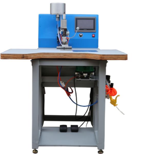 Industrial high-speed machine for pearl attachment in textiles. Operates on 220V, requires a 3.0 HP air compressor. Attaches pearls from 4mm to 12mm.
