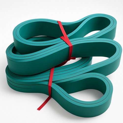 High strength green rubber caterpillar belt with a thickness of 20mm. Belt size and top width 9mm. Minimum order quantity of 2 pieces.