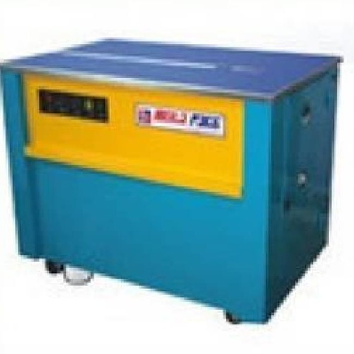 Mild steel high table semi-automatic strapping machine. Features 6-15mm strap width, 450 Newton strap force, and 1.5 seconds strapping speed. Industrial application ready.