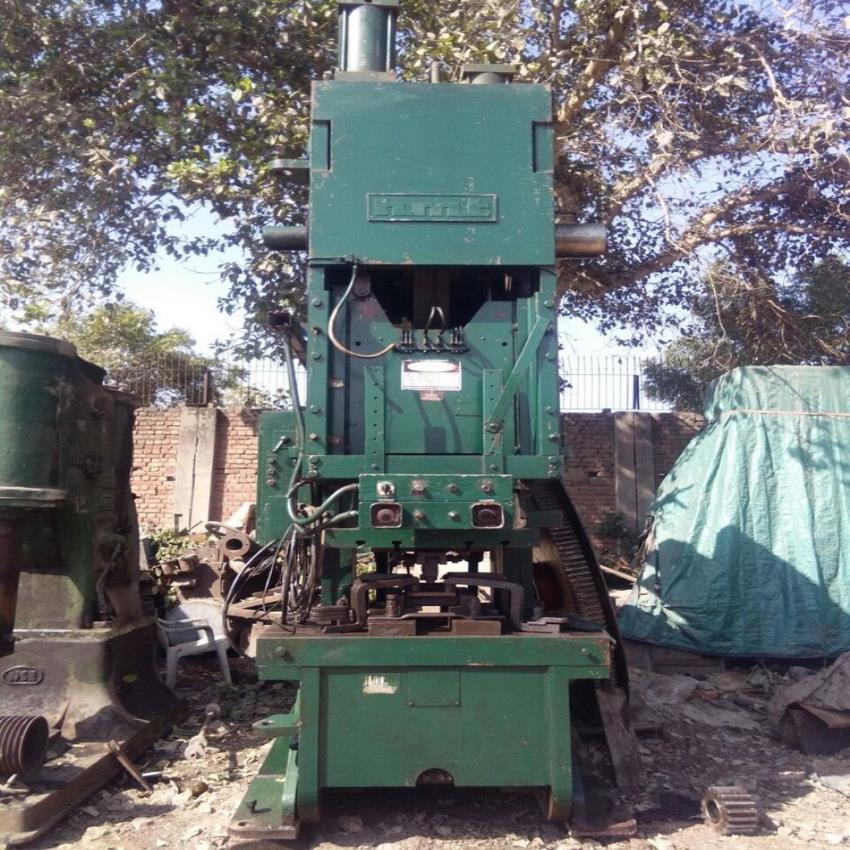 Used HMT Power Press, 200 Ton capacity. Features 125mm ram adjustment, 200mm stroke, 630mm shut height. Includes 30-tonne cushion capacity. Model P-200-0B1-PRESS.