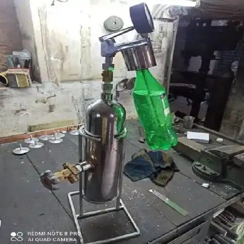 Compact home soda maker device. Designed for convenient beverage preparation in a domestic setting.