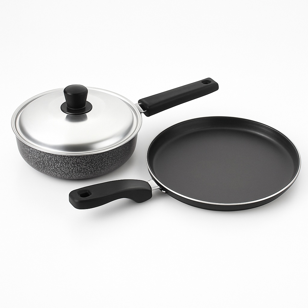 Circular non-stick breakfast set for home use. Crafted from durable nonstick material. Made in India for reliable performance. Ideal for daily meals.