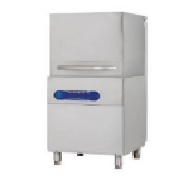 This hood type dish washer features a 45 Ltrs tank, 8.6 Ltrs boiling tank. It washes up to 60 baskets/hour at 60-65°C. Rinsing temp is 80-85°C.