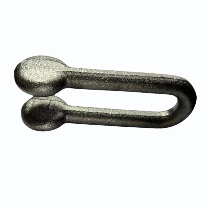 Hook type D tractor shackle, 6 inch length, 20 ton load capacity. Polished carbon steel, silver color.