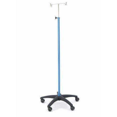 Stainless steel IV stand with epoxy powder coating. Features a 5-leg base and a 5 cm rod size for stability. Ideal for medical environments.