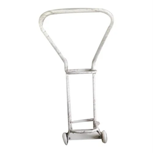 Powder-coated mild steel hospital trolley for one oxygen cylinder. Features a 1-year warranty and a white finish. Ideal for medical facilities requiring secure cylinder transport.