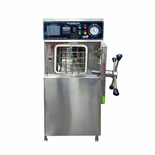 Stainless steel ETO gas sterilization equipment, model ZSE:A38, designed for hospital use. Operates at 55°C. Manufactured in India.