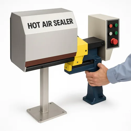 This hot air sealer is designed for efficient sealing applications. Provides precise temperature control for various materials. Suitable for industrial packaging and sealing needs.
