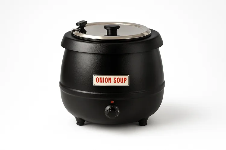 Black 10 Ltr soup turin with PC material. Round shape, box packed for hotel usage. Reliable and durable food warming equipment.