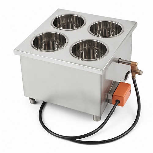 Rectangular SS spoon sterilizer for hotels. Electric-powered, silver color, 3 feet height. Ensures hygienic spoon sterilization for guest service.