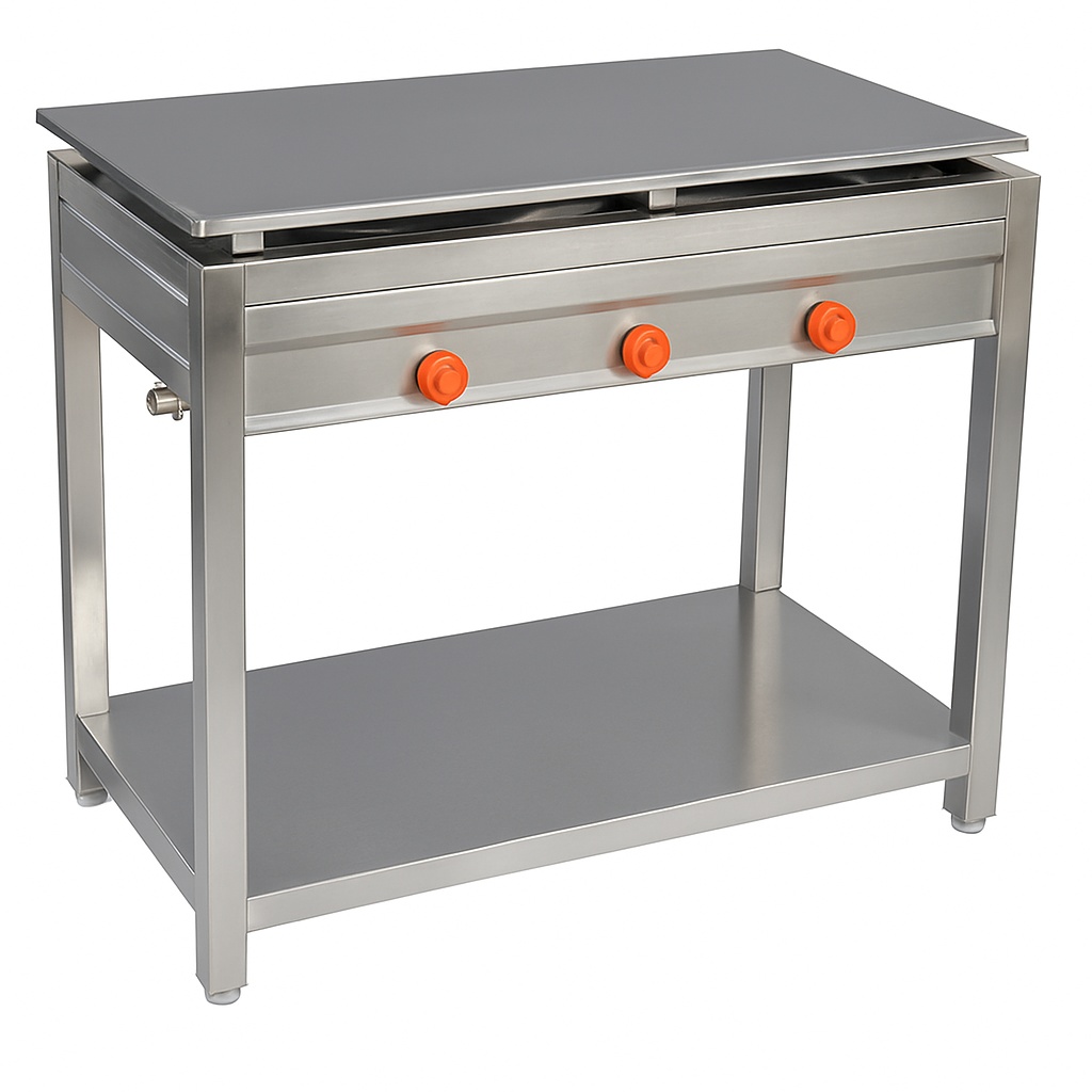 Hotel-grade stainless steel gas dosa plates. Silver color, 36-inch length. Durable construction for commercial use. High-quality material ensures longevity.