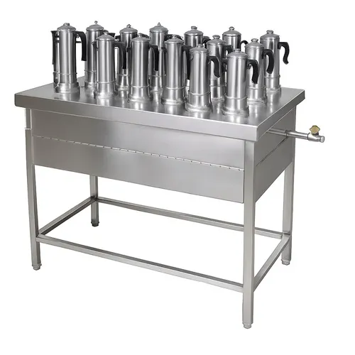 Puttu steamer for hotel/restaurant use with 3 burners and a copper base. Size is customizable to customer requirements. Ideal for commercial kitchens.