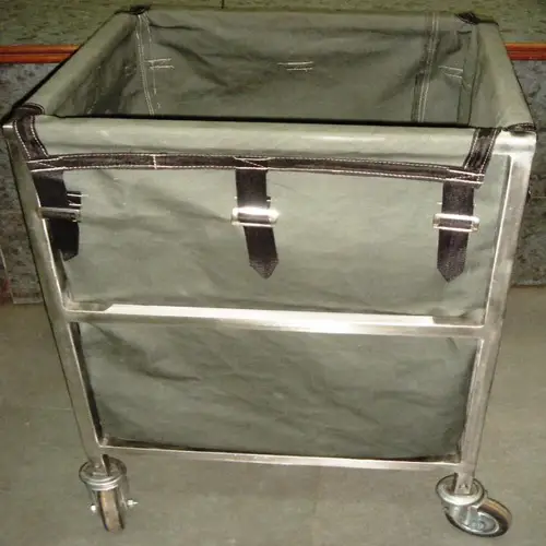 Functional housekeeping linen cart designed for efficient linen management in hospitality settings. Sturdy construction for daily use and transport of linens.
