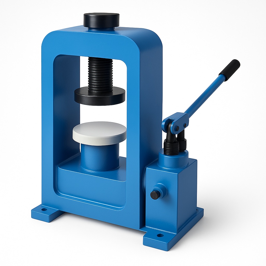 Hand-operated hydraulic cube testing machine. Ideal for robust material testing applications requiring precise hydraulic power.